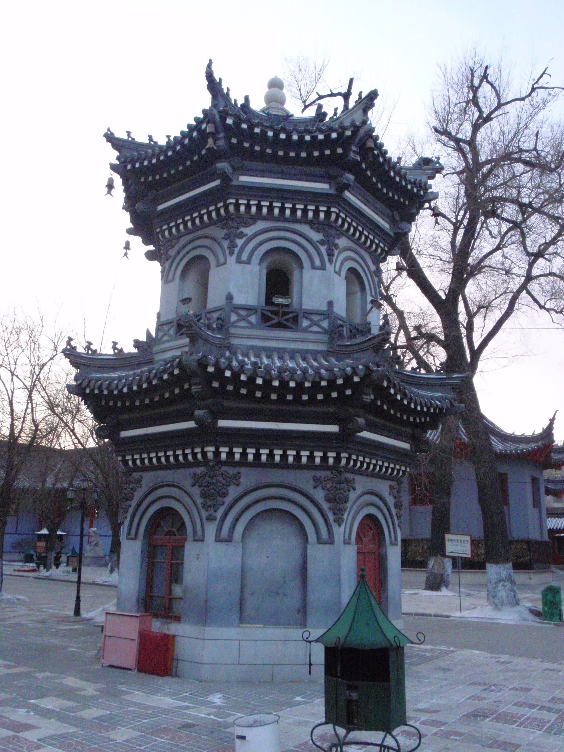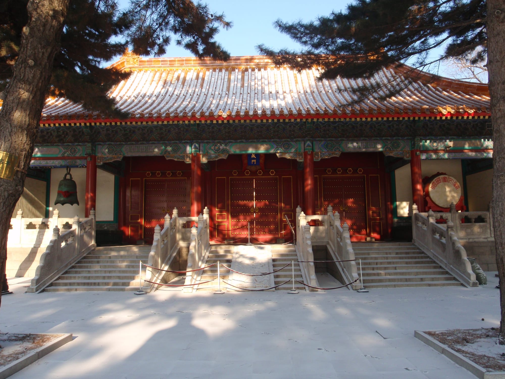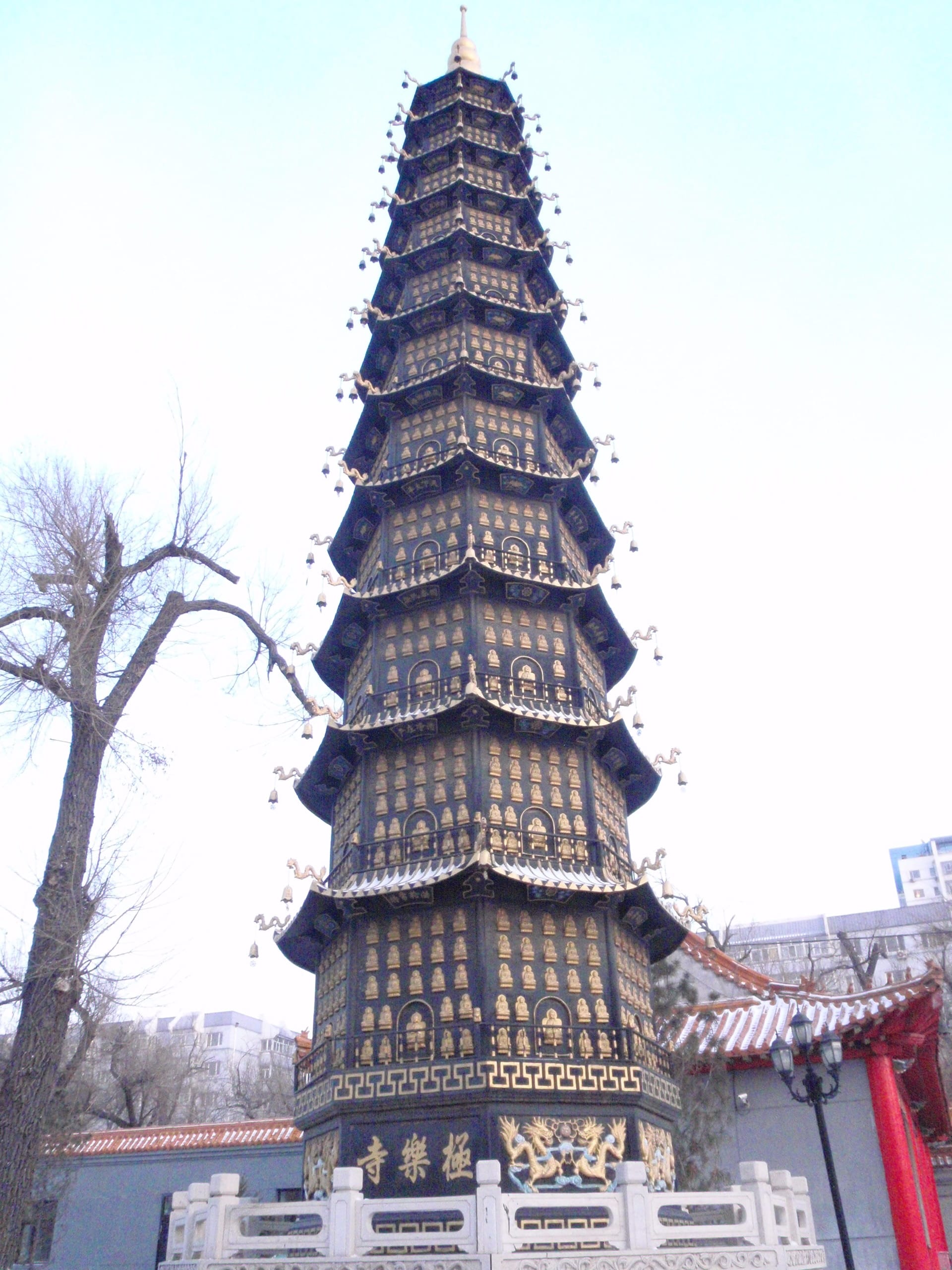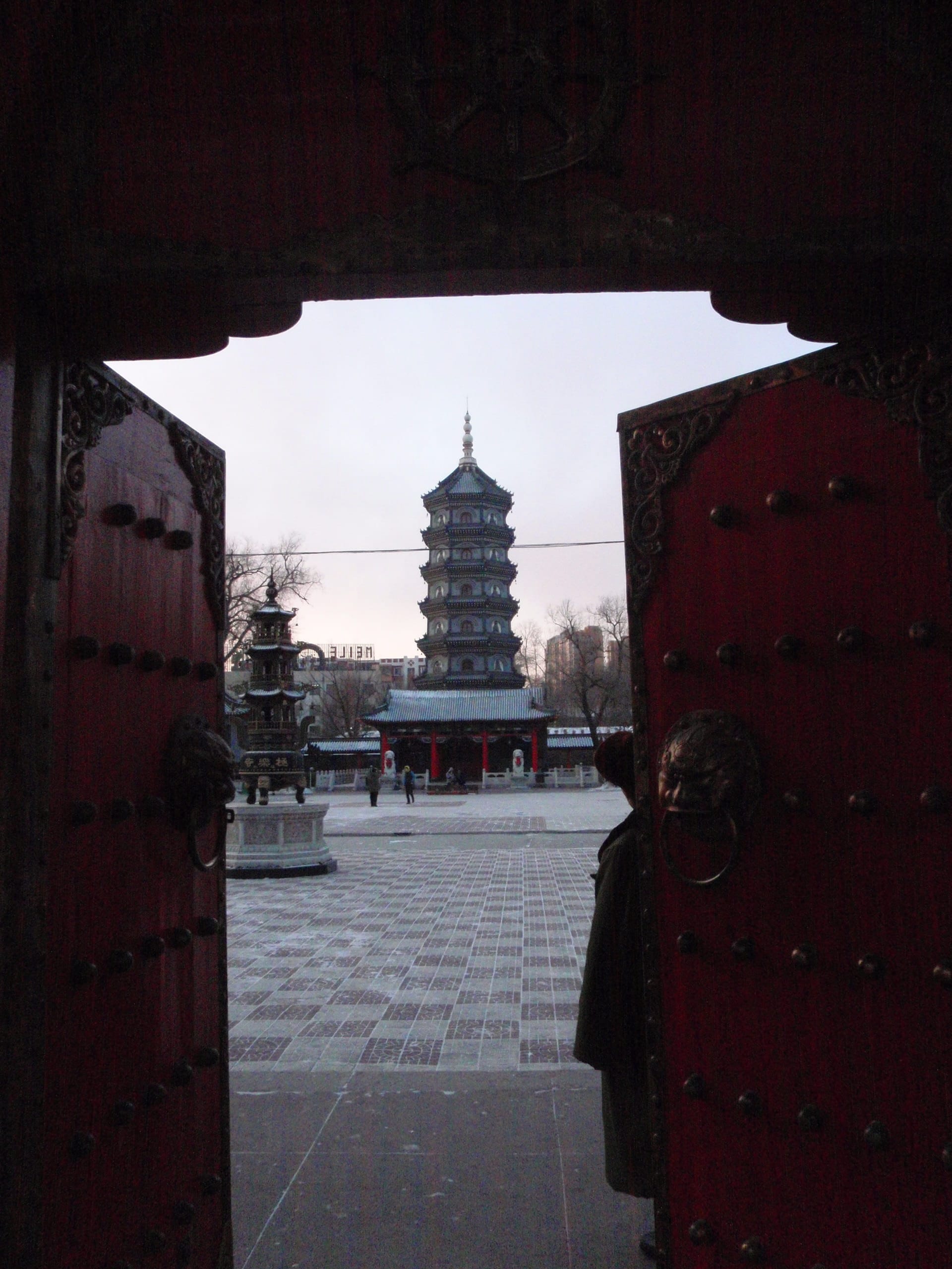 Built in Ming-Qing architectural style, this elegant pagoda houses sacred relics and rises above the complex like a spiritual beacon. Its red walls and golden roofs look especially dramatic when dusted with Harbin’s winter snow.