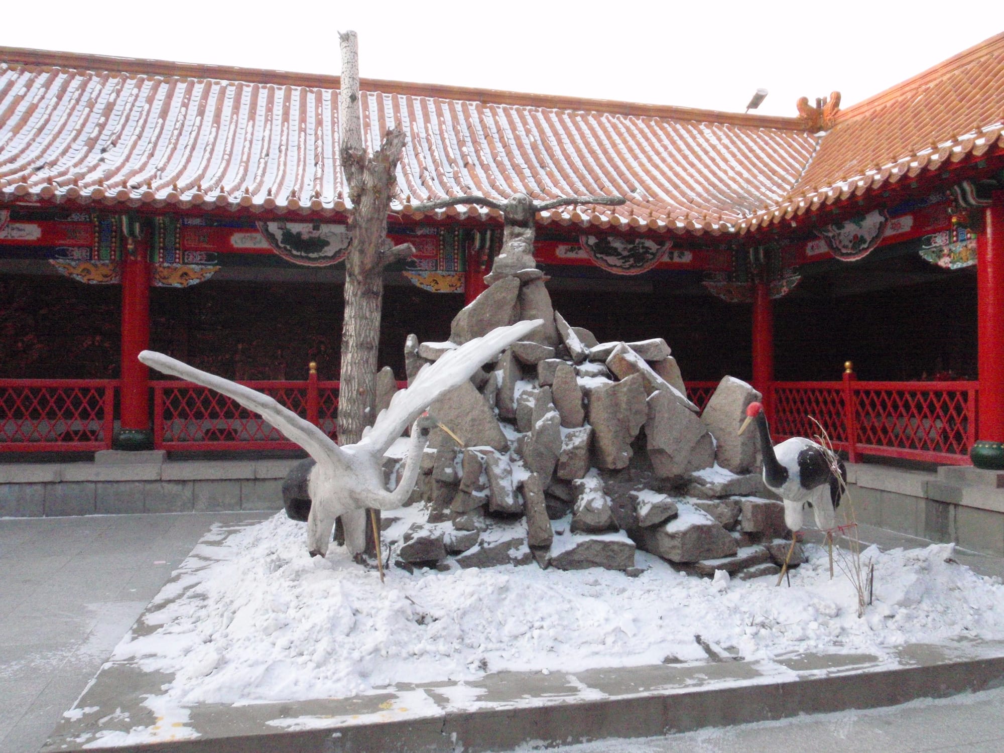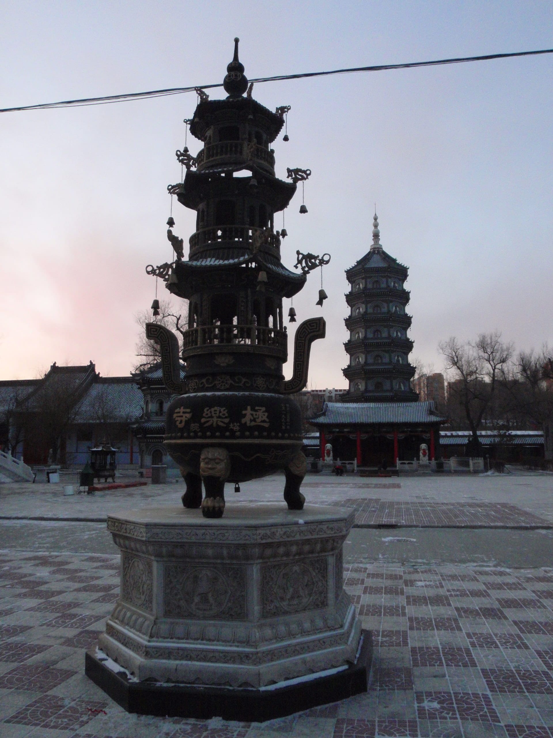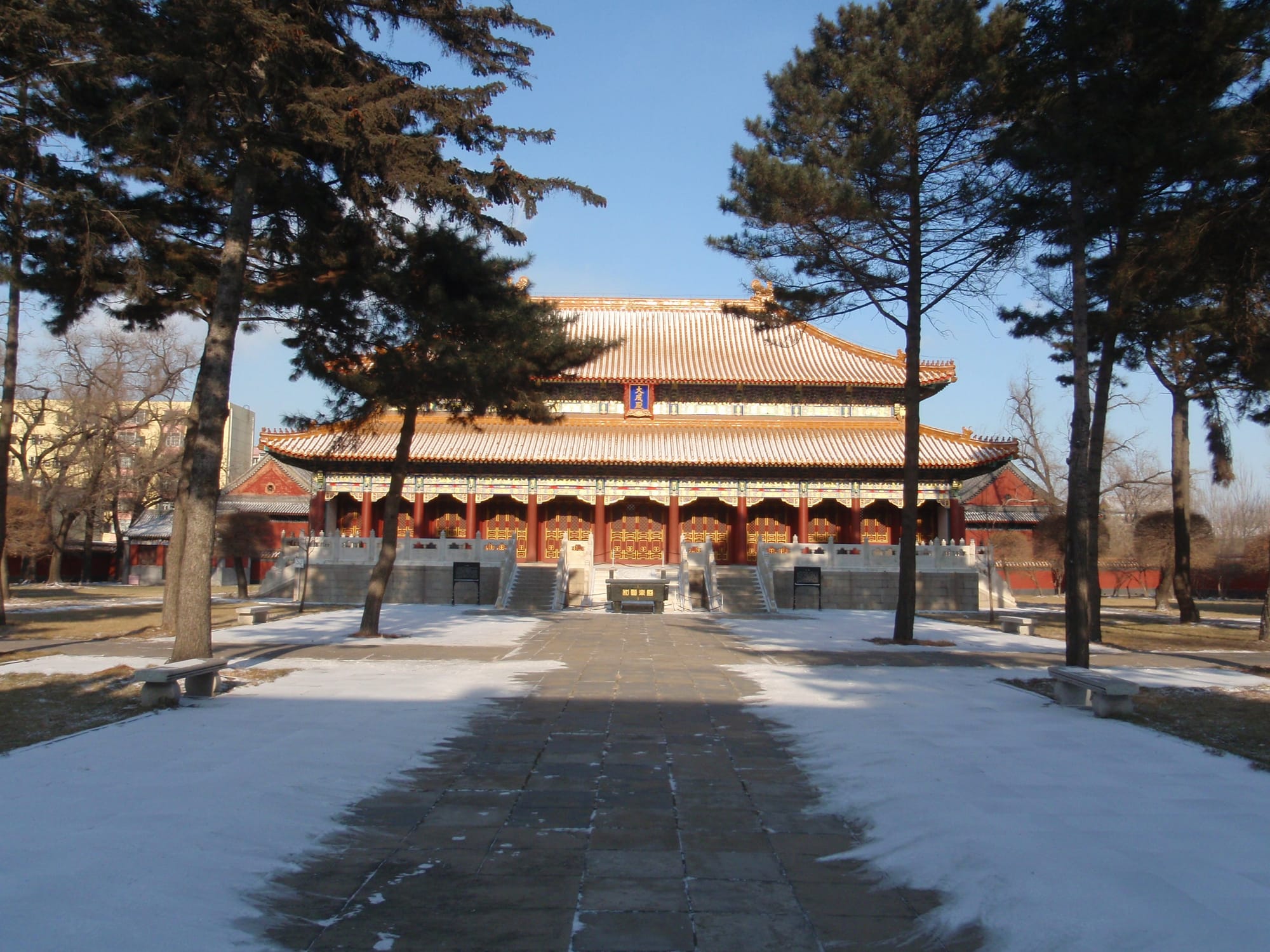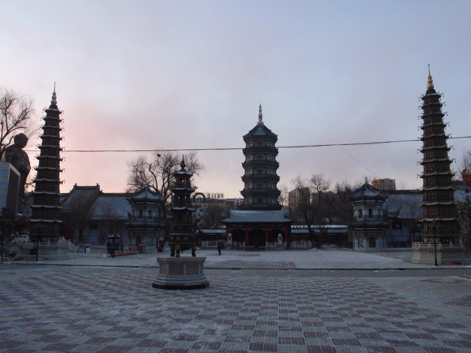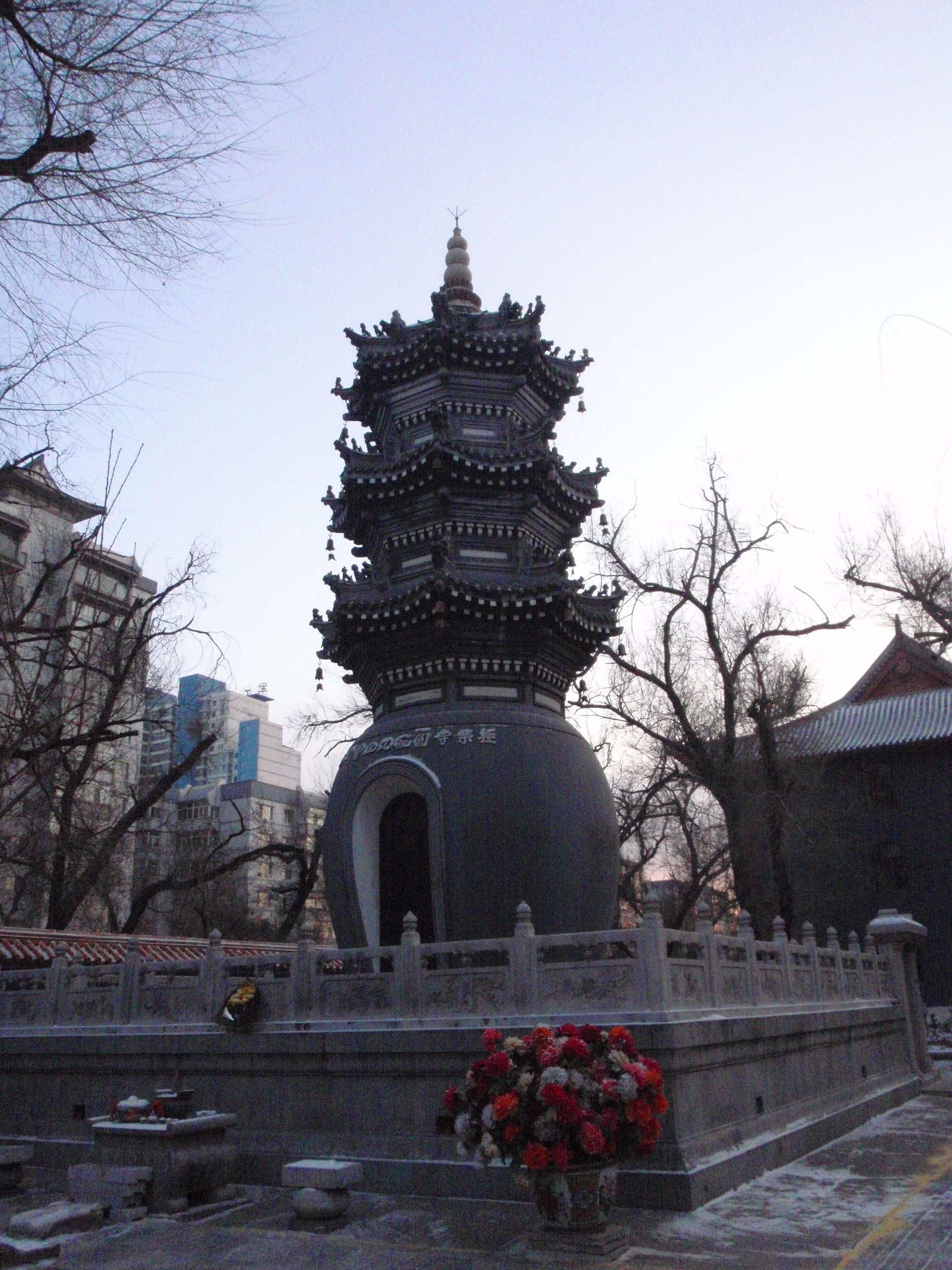 Built in Ming-Qing architectural style, this elegant pagoda houses sacred relics and rises above the complex like a spiritual beacon. Its red walls and golden roofs look especially dramatic when dusted with Harbin’s winter snow.
