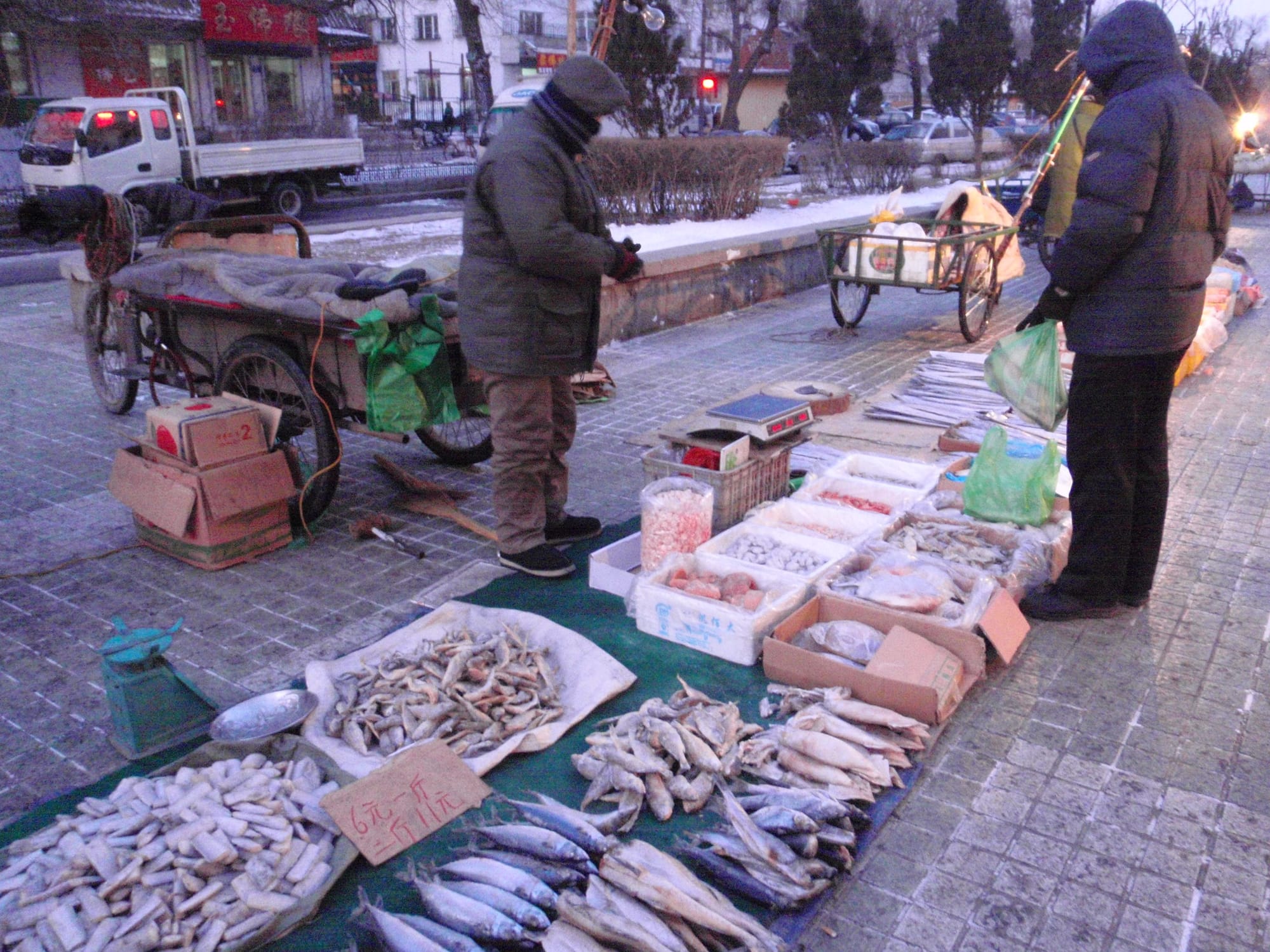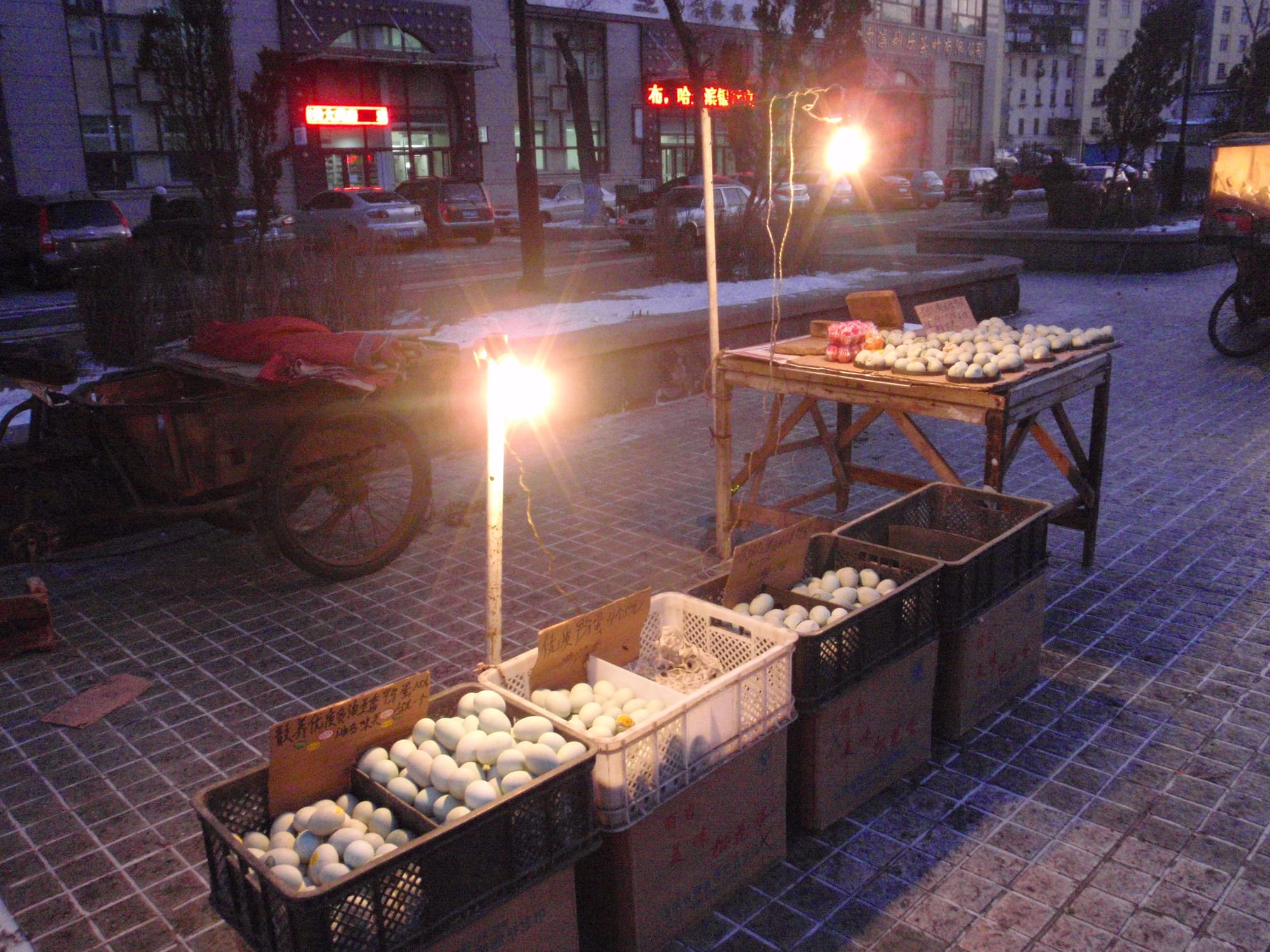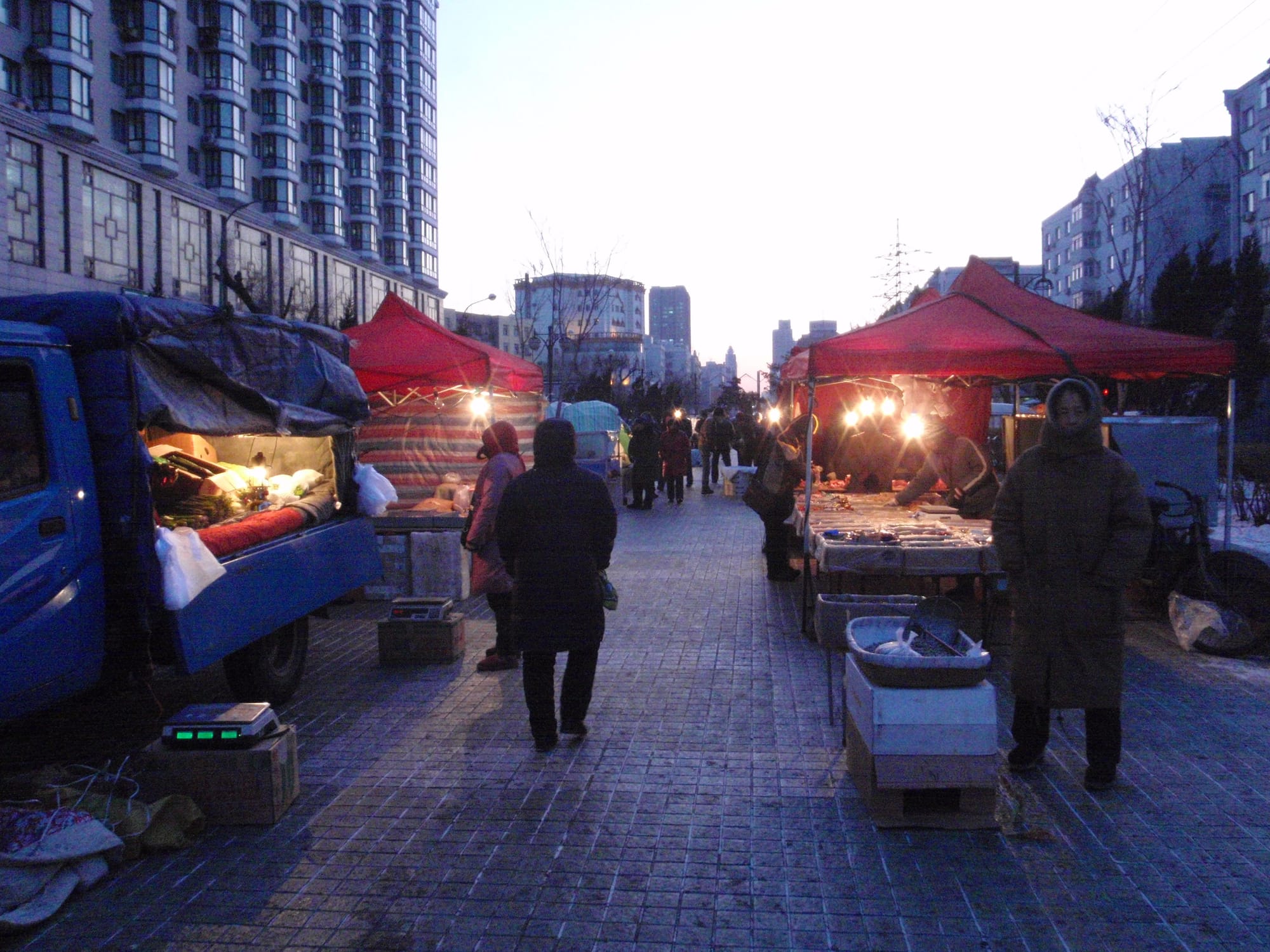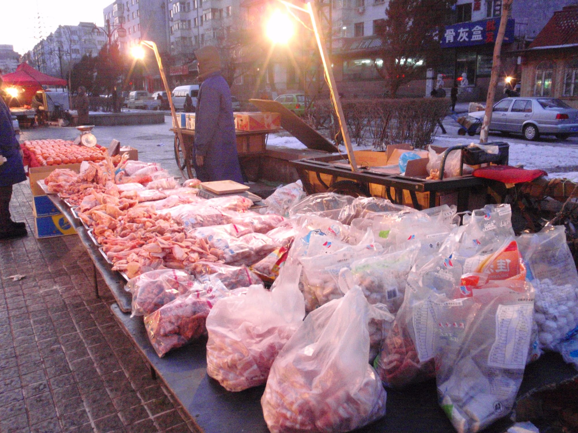 In most cities, street markets are a morning affair. In Harbin, the sub-zero temperatures turn some sidewalks into all-day marketplaces. From dawn until well after sunset, some of the city’s side streets remain alive with hawkers surrounded by a surreal variety of goods that would require a freezer anywhere else in the world.