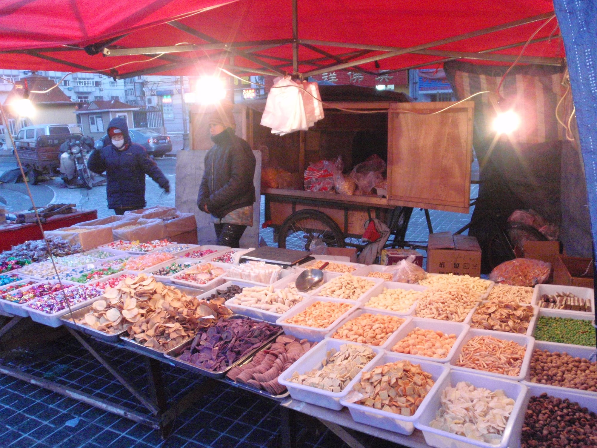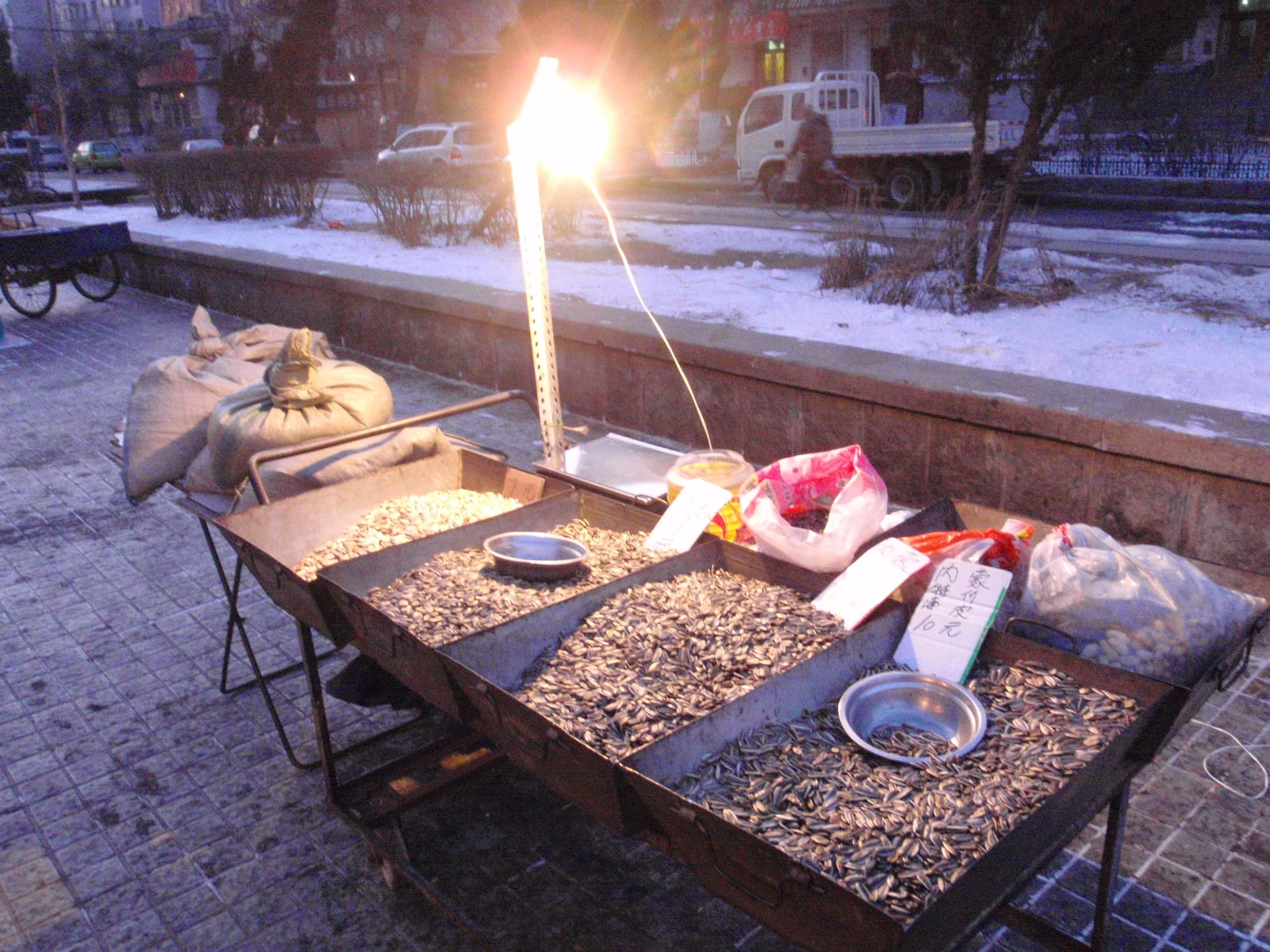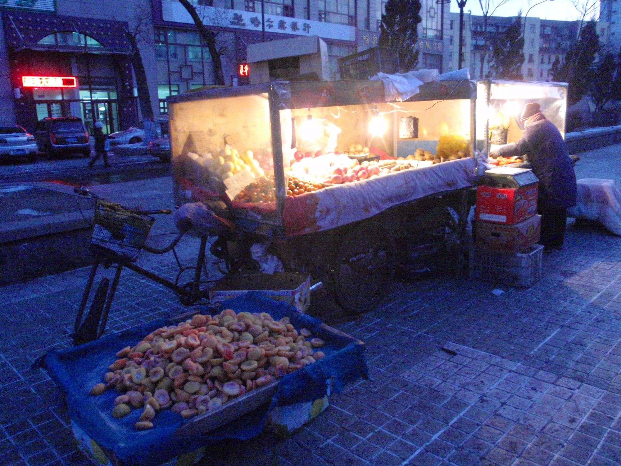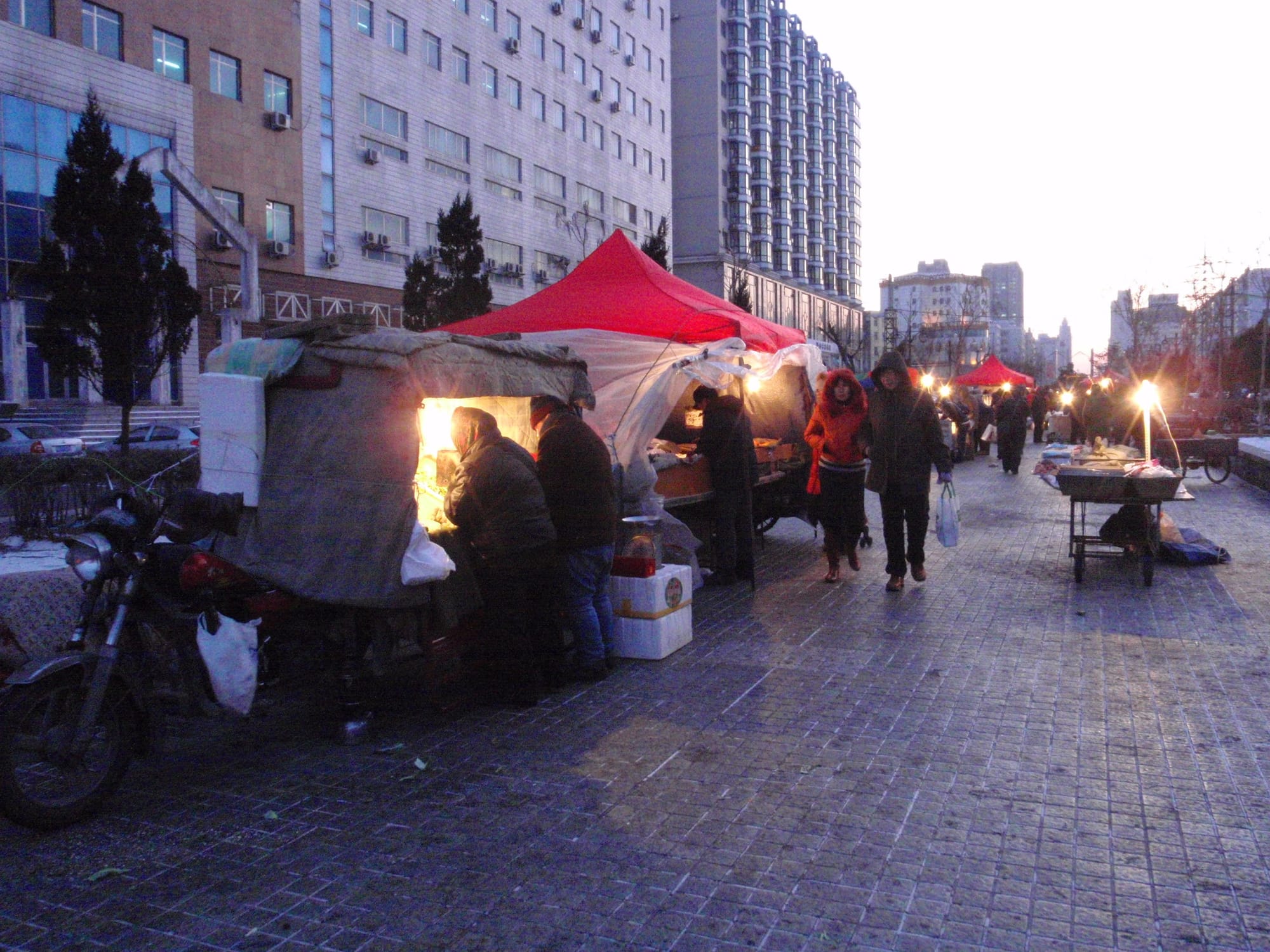 In most cities, street markets are a morning affair. In Harbin, the sub-zero temperatures turn some sidewalks into all-day marketplaces. From dawn until well after sunset, some of the city’s side streets remain alive with hawkers surrounded by a surreal variety of goods that would require a freezer anywhere else in the world.