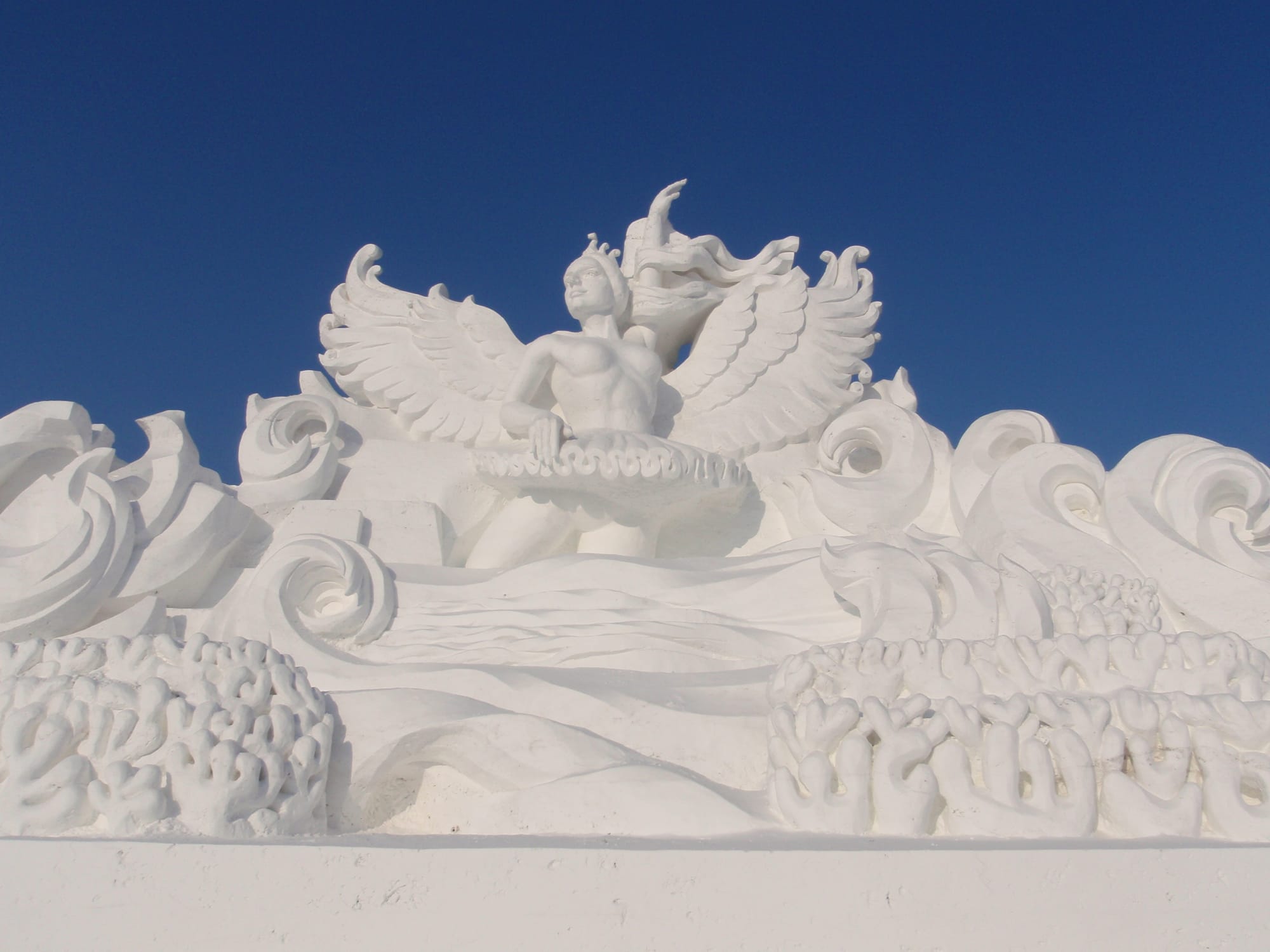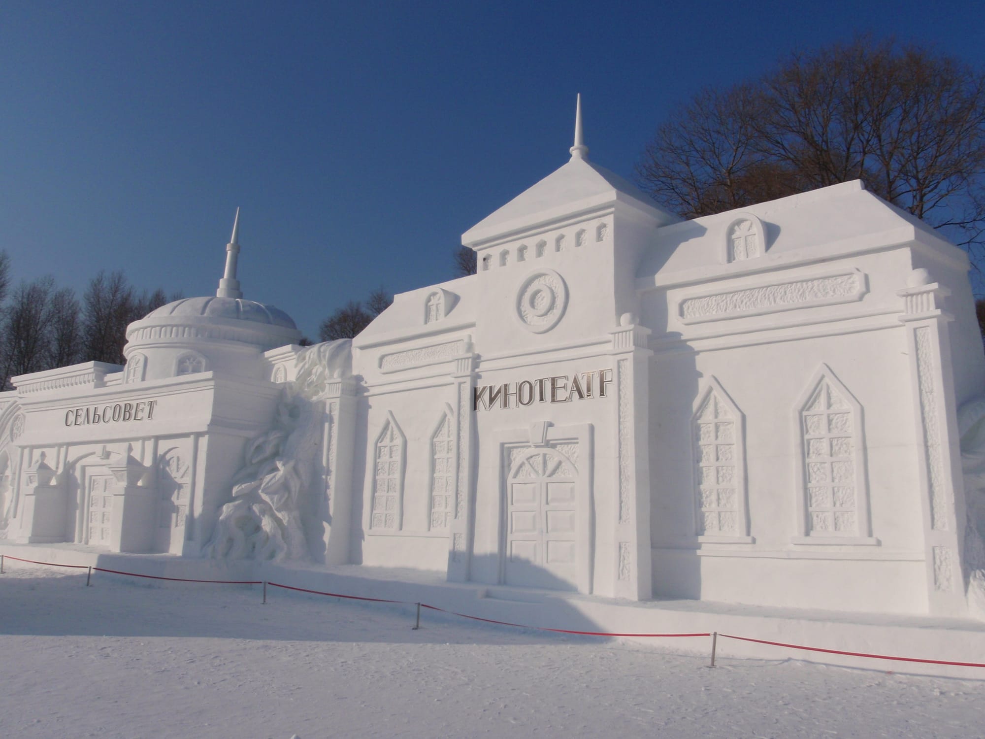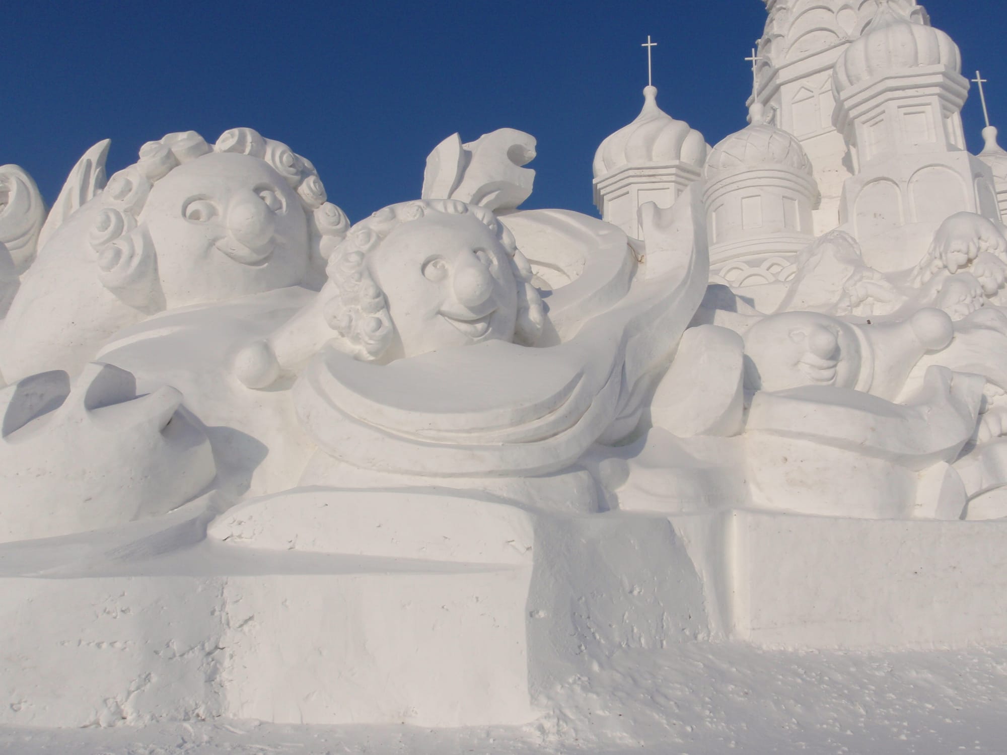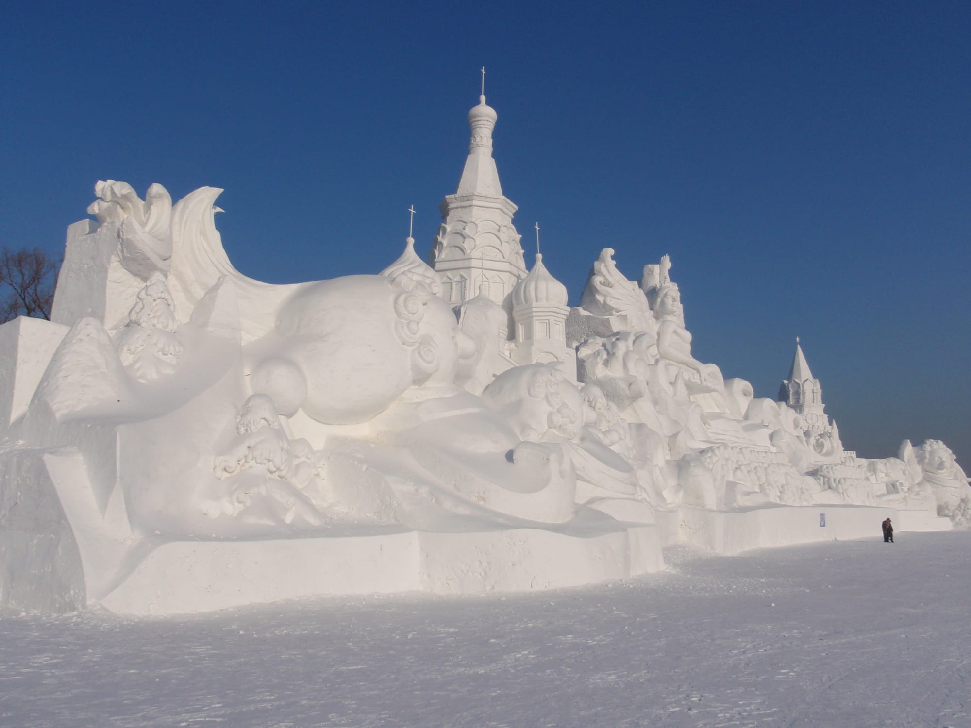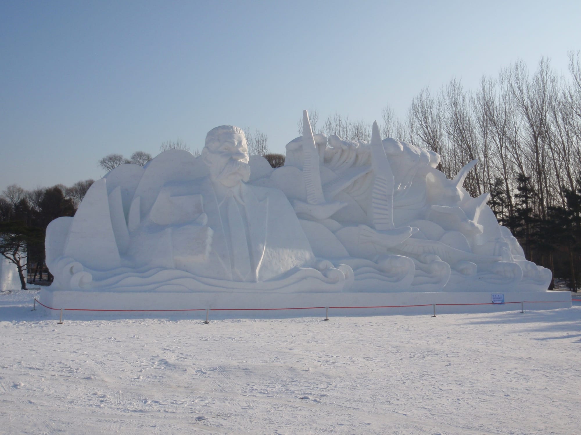 In winter, the island transforms into a vast, white canvas for international artists where it hosts the annual Snow Sculpture Art Exposition, featuring massive and intricate sculptures. Many depict towering figures, historical scenes and architectural replicas, often record-breaking in size and detail.