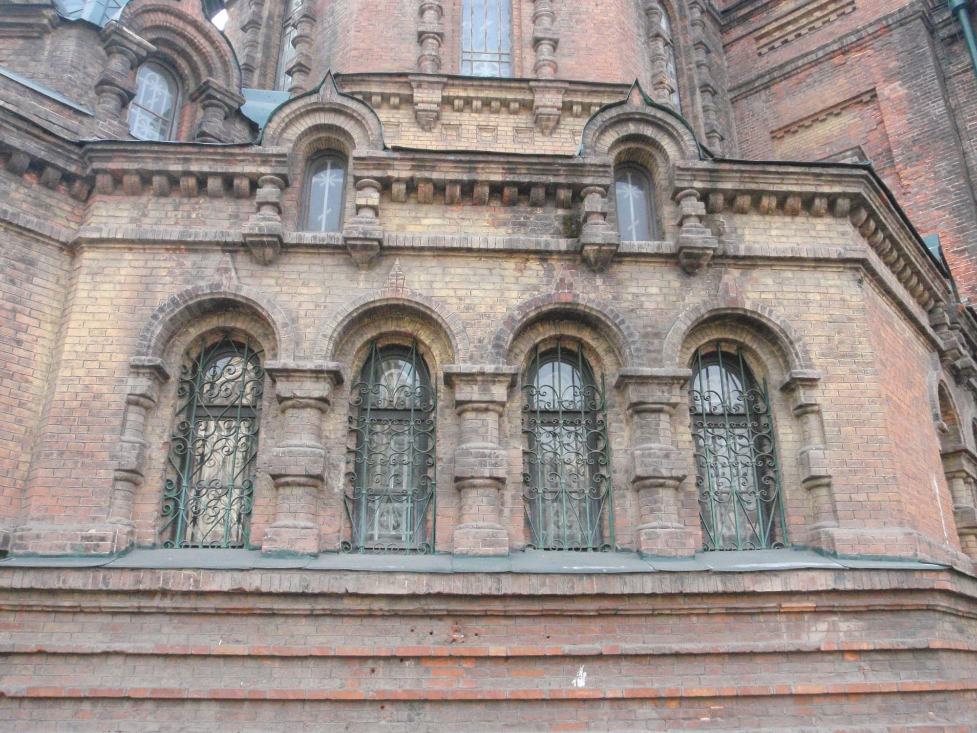 Featuring a towering main dome and four smaller green onion-shaped domes atop red-brick walls, the cathedral exemplifies classic Russian Orthodox architecture.