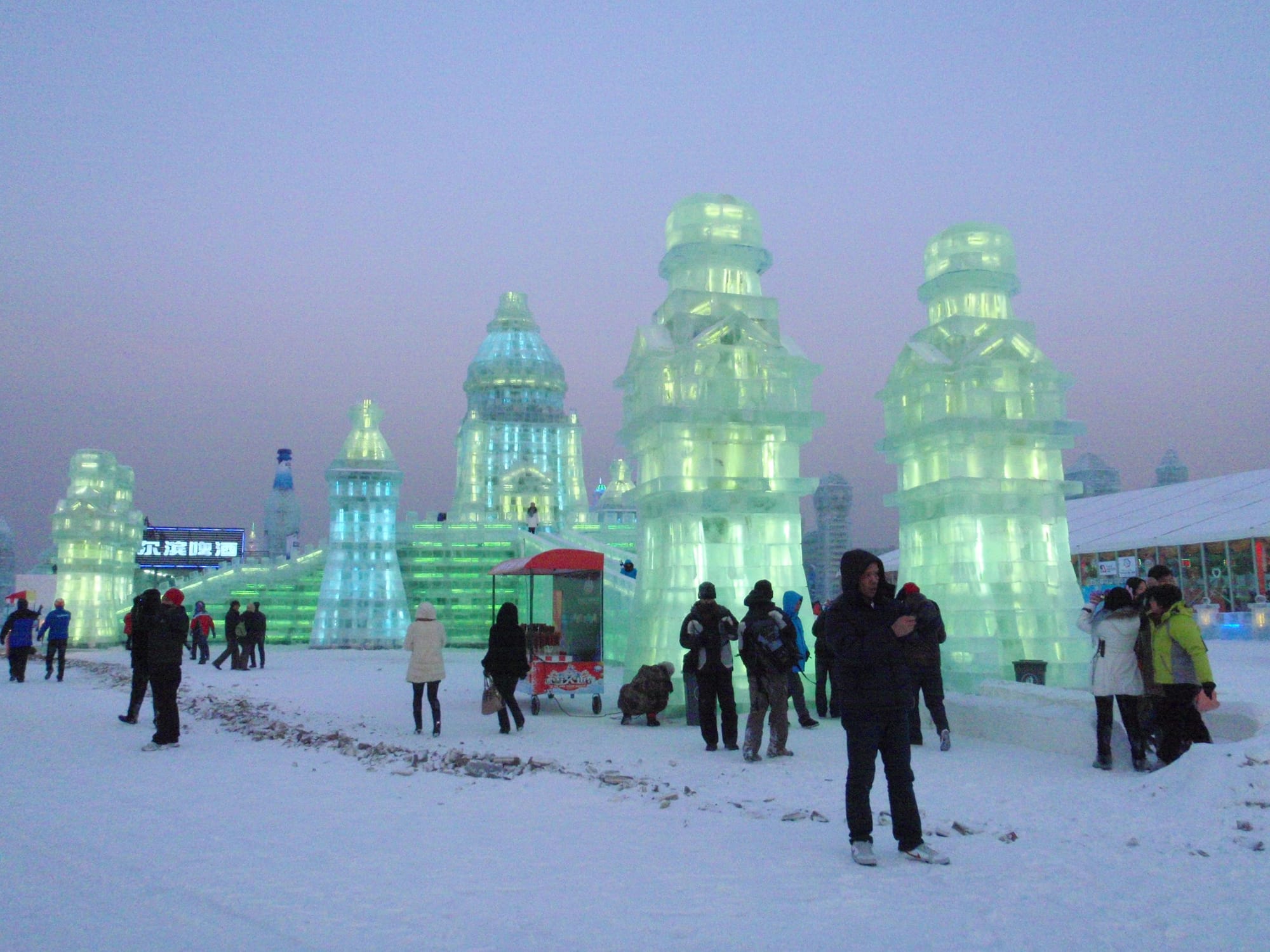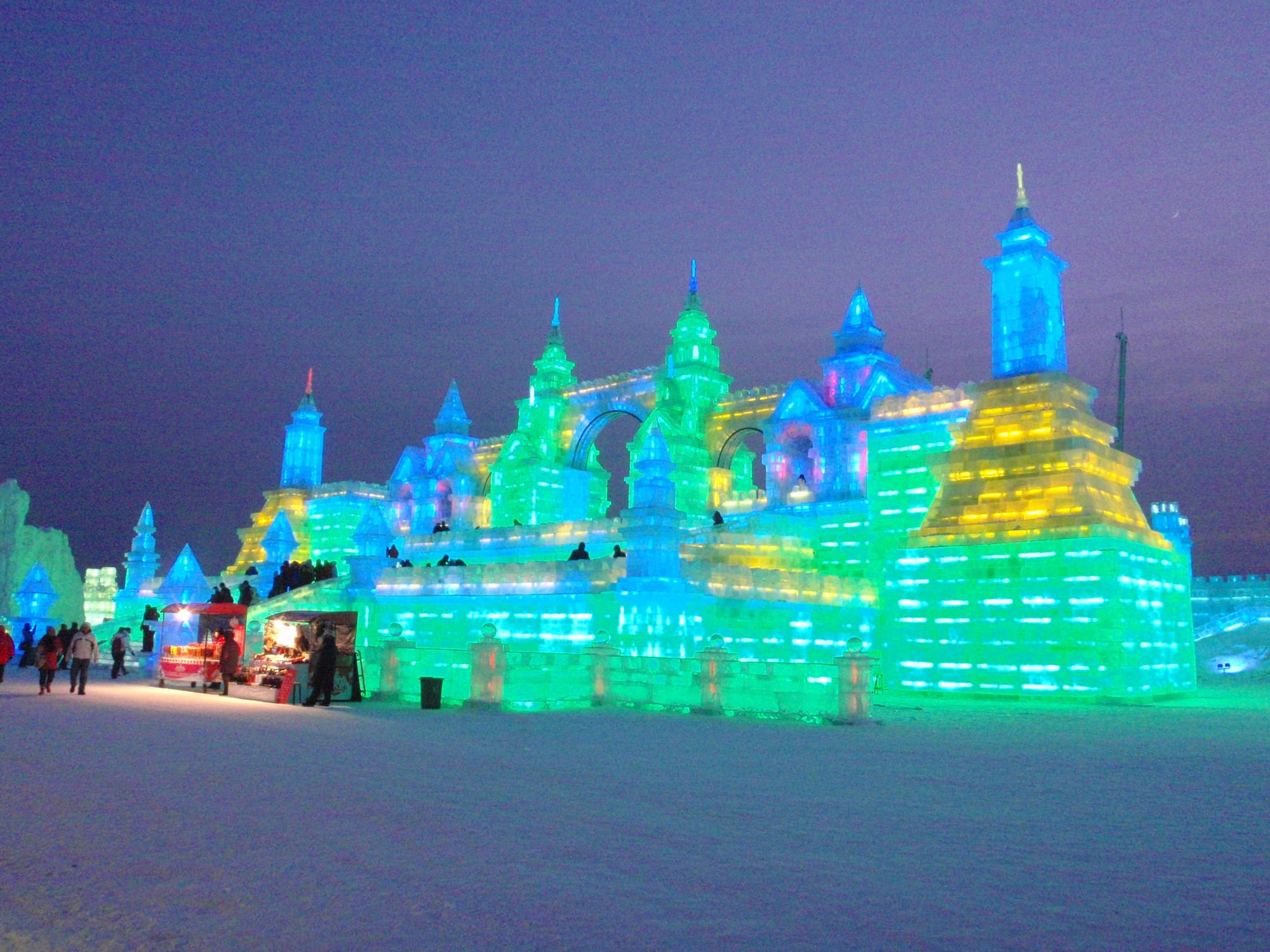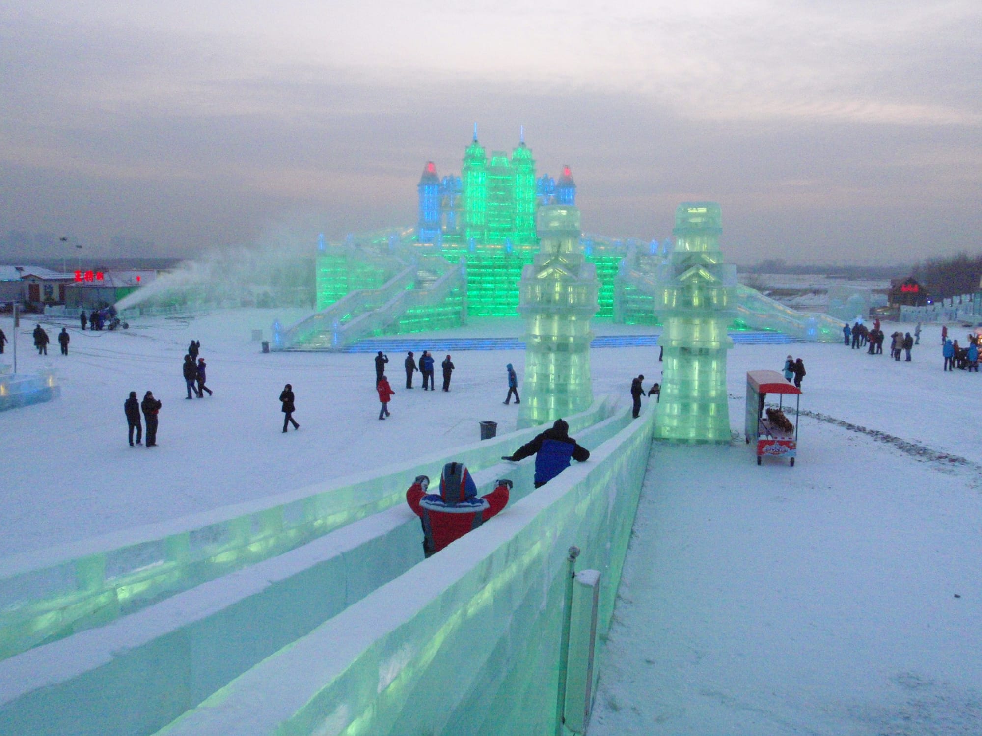 The Ice and Snow World typically operates from late December to late February, weather permitting. Mid-late afternoon visits are highly recommended as you would be able to view both the day and illuminated ice structures after dark.